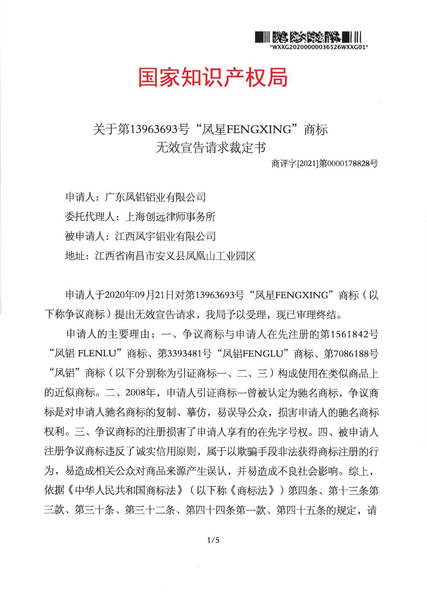 大兴安岭辉知队 | 国家知识产权局:“凤星”商标无效