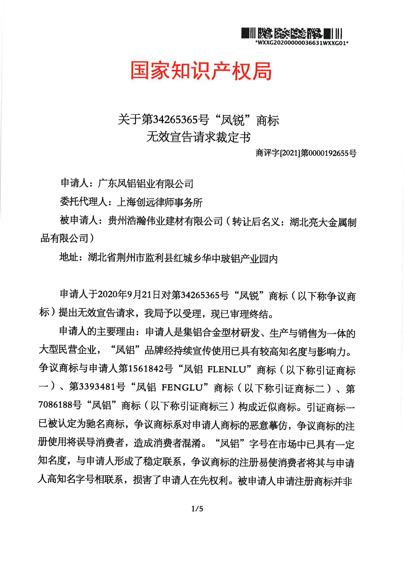 大兴安岭辉知队 | 国家知识产权局:“凤锐”商标无效