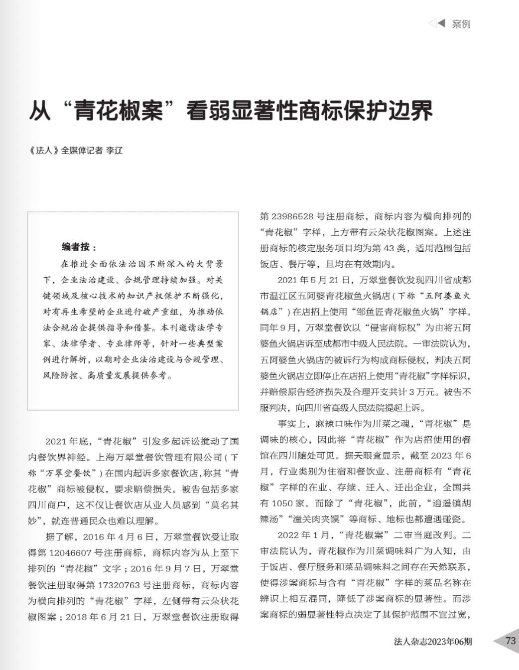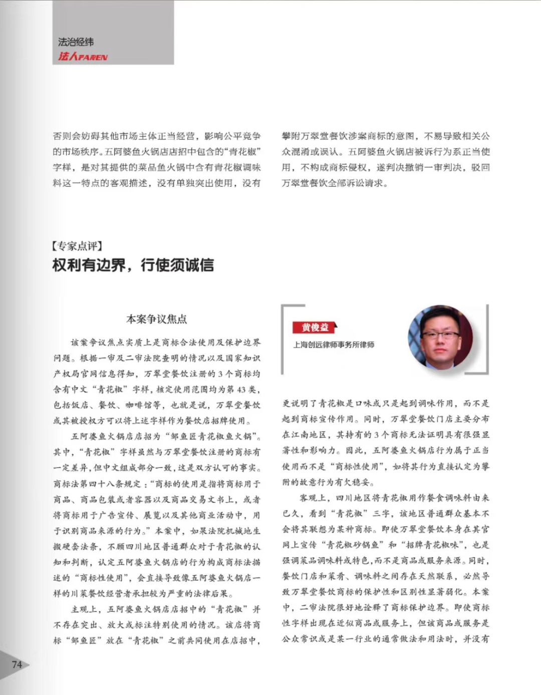 大兴安岭辉知简讯 | 辉知队黄俊益律师应“法治日报”旗下杂志邀请,就“青花椒”案发表专家点评