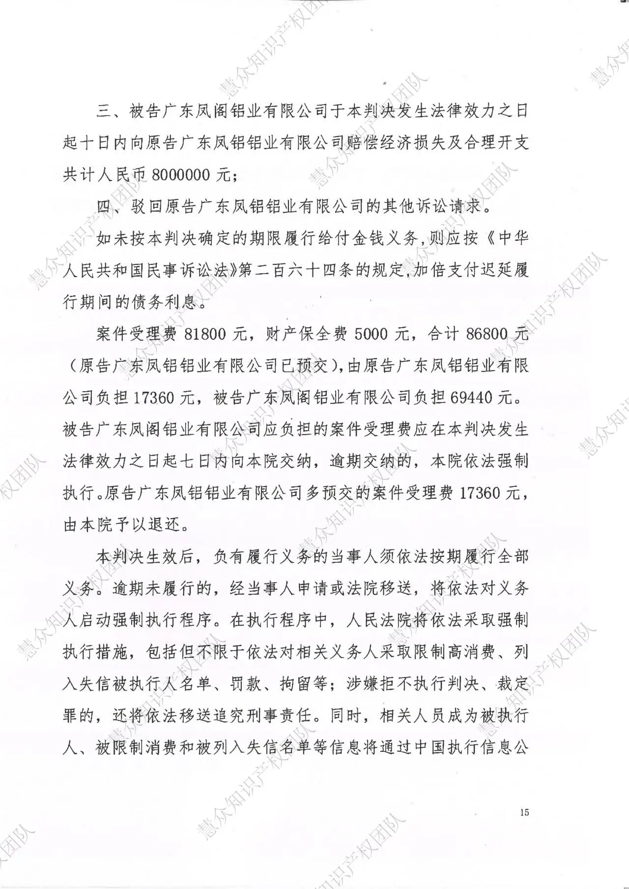 大兴安岭判赔800万!辉知队代理“凤铝”商标维权案胜诉